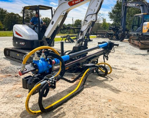 The Word Excavator Rock Drilling Attachment has quick coupler capabilities for simple, rapid installation and 360-degree mast movement, making it easy to turn your excavator into a multi-tool.